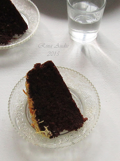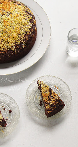 7. Panggang dalam oven selama 60-70 menit sampai matang. Jika ditusuk lidi keluar bersih, artinya sudah matang. Setelah dikeluarkan dari oven biarkan di dalam loyang selama 15-20 menit supaya kue merenggang dari loyang. Balik di atas rak dan biarkan dingin. Potong-potong dan sajikan.