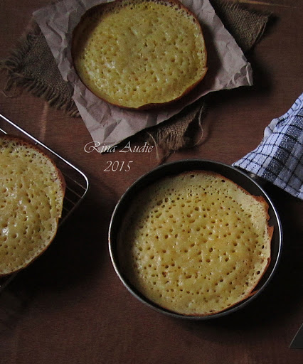 - Setelah lubang/pori yang terbentuk tinggal sedikit, tutup wajan supaya permukaan martabak mengering. Angkat martabak dari wajan menggunakan sutil kayu tipis.
