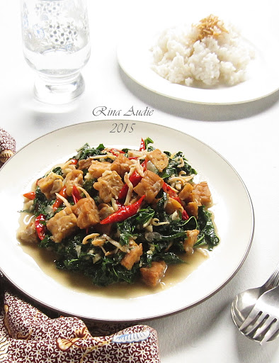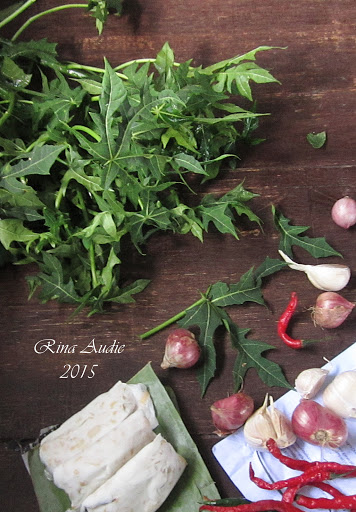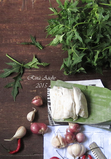 - Siangi daun pepaya jepang kemudian cuci bersih, sisihkan. Goreng tempe sampai matang, sisihkan.