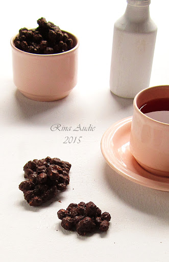 - Sendokkan ke atas loyang menggunakan 2 bh sendok teh. Beri jarak di antaranya. Panggang selama 15 menit, keluarkan dari oven dan dinginkan.