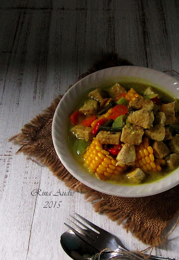 Ketika belanja di tukang sayur ketemu tempe gembus. Seneng deh nemu tempe gembus ini karena jika sampai depan rumah, tempe gembus di tukang sayur pasti sudah habis. Jika biasanya digoreng tepung kali ini mau dimasak pake santan. Diberi bumbu lodeh pas banget deh. Lodehnya bukan lodeh yang pucat seperti biasa tapi lodeh kuning biar cantik kuahnya. Bumbu lodeh ini menggunakan rebon karena saya tidak nemu tempe semangit. Dengan diberi rebon, kuah lodeh ini terasa begitu gurih. Nggak kalah dengan tempe semangit. Sedep deh pokoknya.